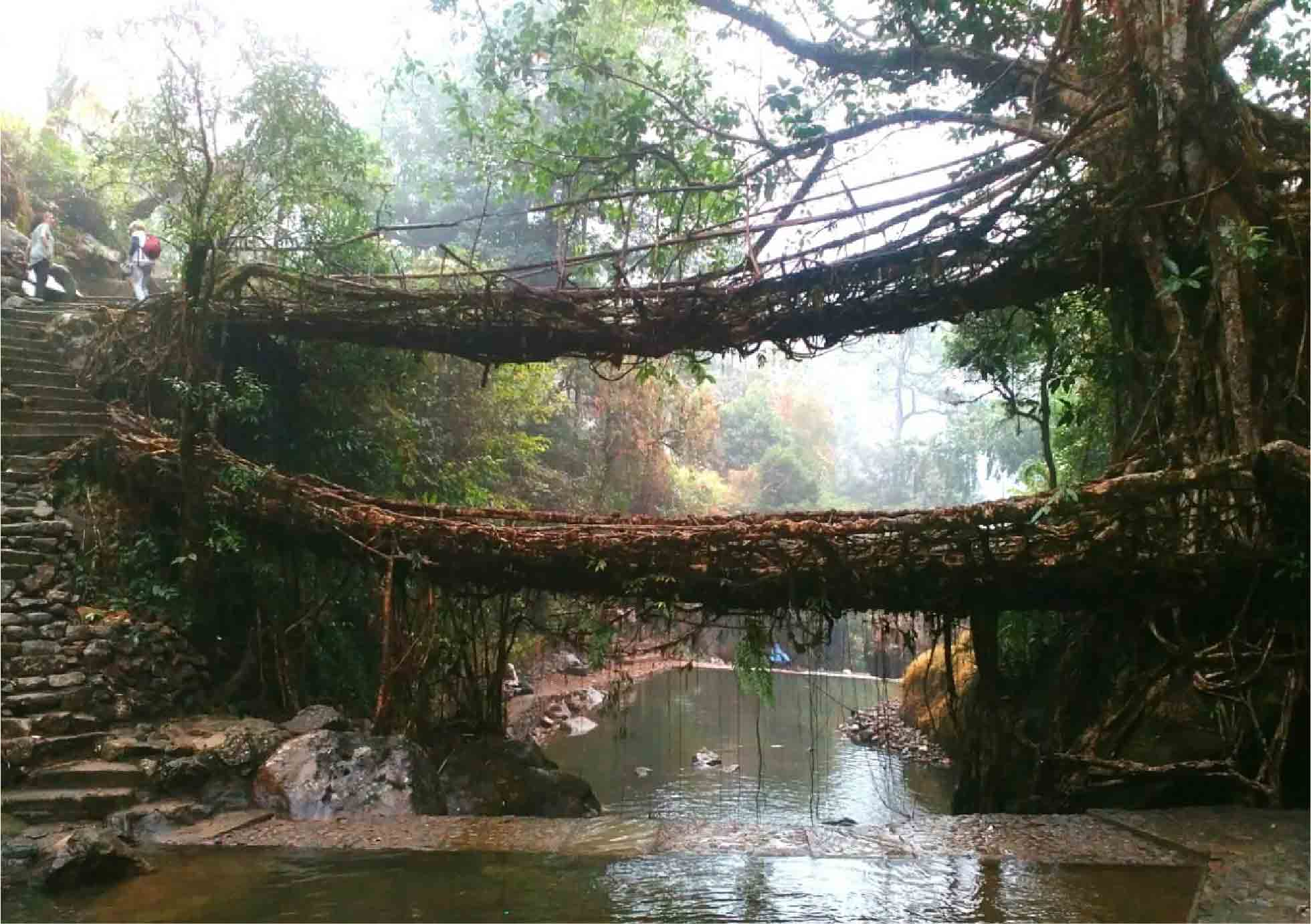 Decker Root Bridge. Marvel at the cascading waterfalls, lush forests, and vibrant tribal